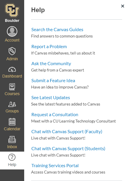 | Canvas Training | Canvas also offers training webinars that instructors can register for after they create an account with their CU email address (@colorado.edu). |