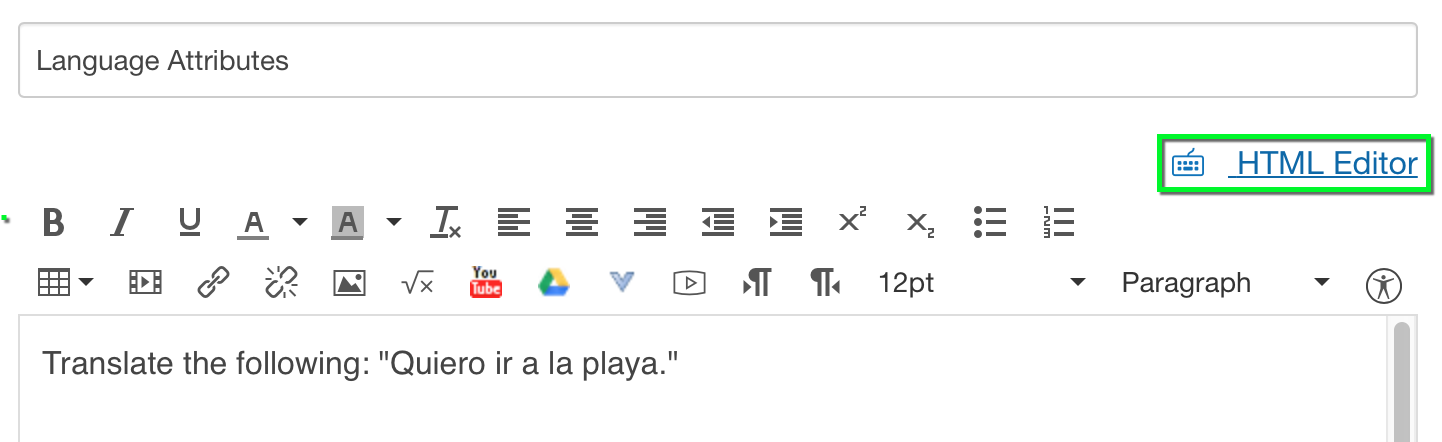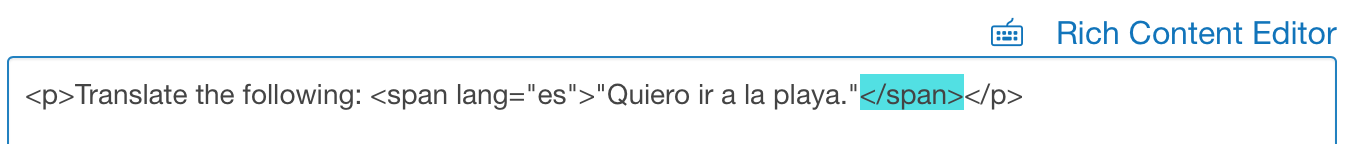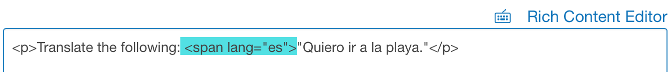 Find the specific phrase that is in a different language, and type "<span lang="xx">" immediately before it. Replace "xx" with your particular language code listed below. This example is using "es" for the Spanish language code.