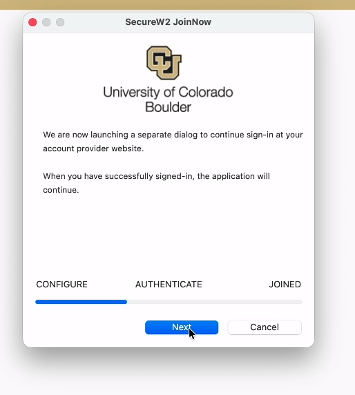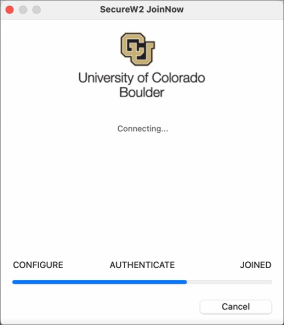 If you're in an active Wi-Fi pilot building, the onboarding client will indicate that it's authenticating to CU Secure.