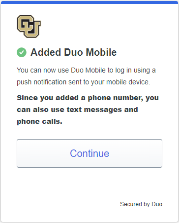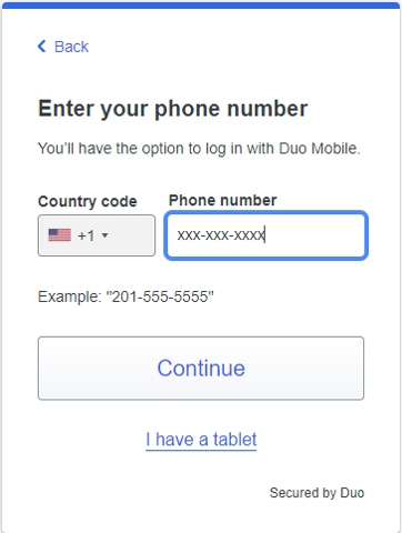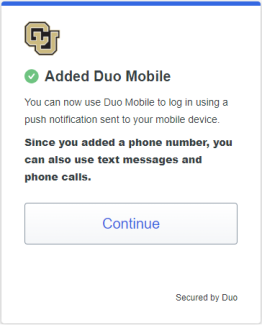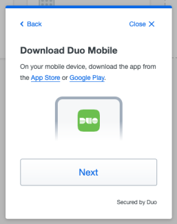 Next, you will need to install Duo Mobile from the Apple app store or Google play store. Follow the platform-specific instructions on the screen to install Duo Mobile.